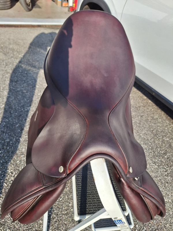 Elle a été utilisée 4 ans et est bien entretenue (nettoyée régulièrement + révisée par le sellier lui-même).