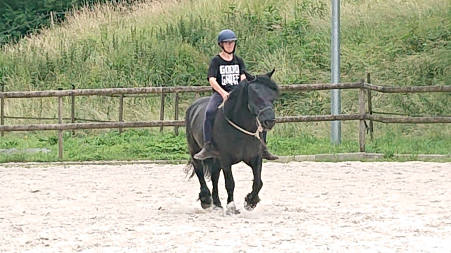 Demi pension sur adorable Merens d'expérience, sait tout faire ! Travail à pied, en liberté, monte dressage en licol voir à cru, longues rênes.