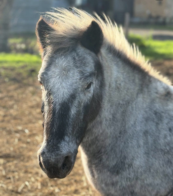 Je propose une demi-pension sur ma Punky, adorable ponette Shetland de 17 ans, mesurant environ 1m07.