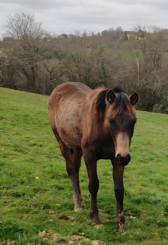 Magnifique pouliche OC (sang Arabe 17,19%), de couleur Isabelle fumé, tendance a foncer en hiver et éclaircir en été, née le 13 mai 2025 sera disponible vers la mi Avril sevrage en cours.
