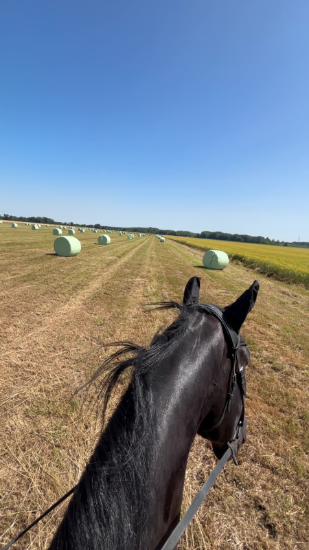 ? très polyvalent : bien mis sur le plat/bonnes bases en dressage, sort en ballade seul ou accompagné (chien, tracteur, eau etc…), obstacle, cross, dressé à l’attelage. Idéal pour du loisir sportif.