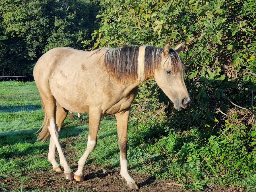 Eh oui monsieur a 4 hautes balzanes (pas du tout salissantes ?) et pis c’est tout : le pie, pour lui, c’est jambes + queue, point barre ?ah si, une petite mèche blanche dans la crinière ? (parce que pourquoi faire comme tout le monde ?)