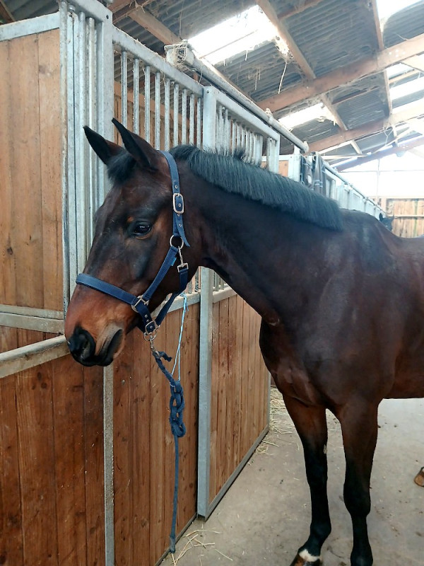 Très bel hongre qui prend 9 ans en 2026, Selle Français bai brun 1m70 (Asti Spumante x Désir Champeix). Chic et expressif, très attachant.