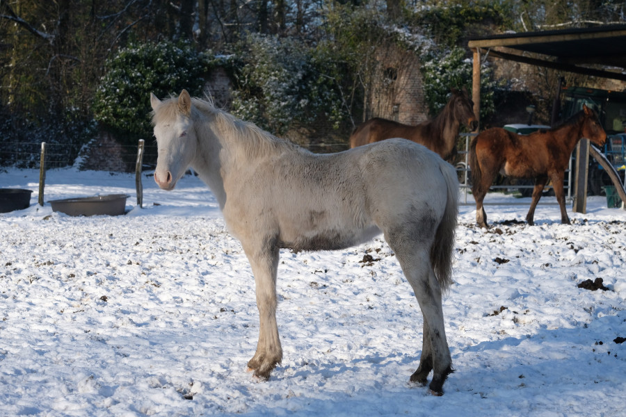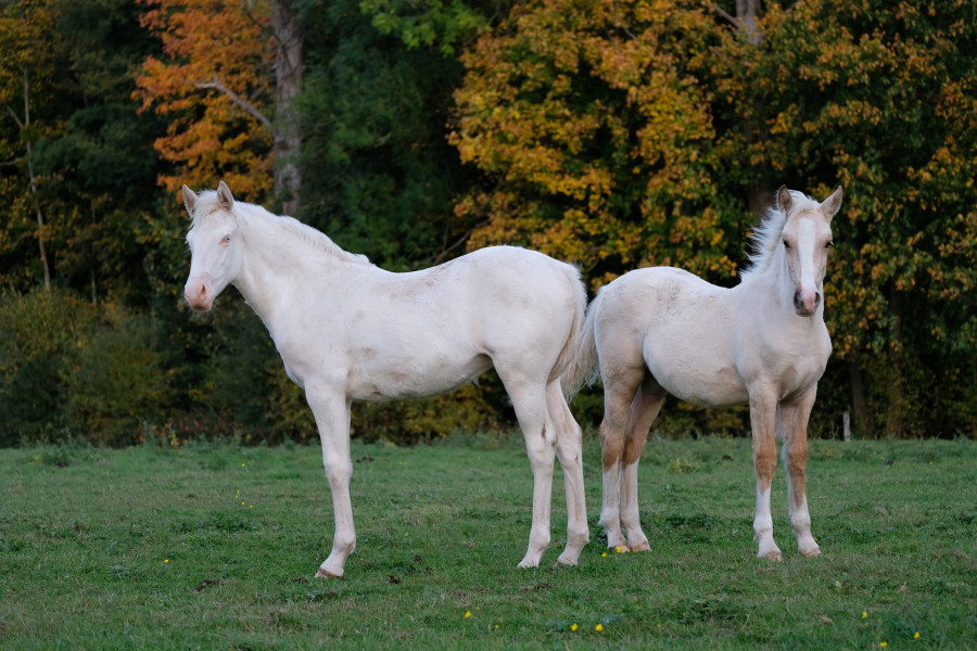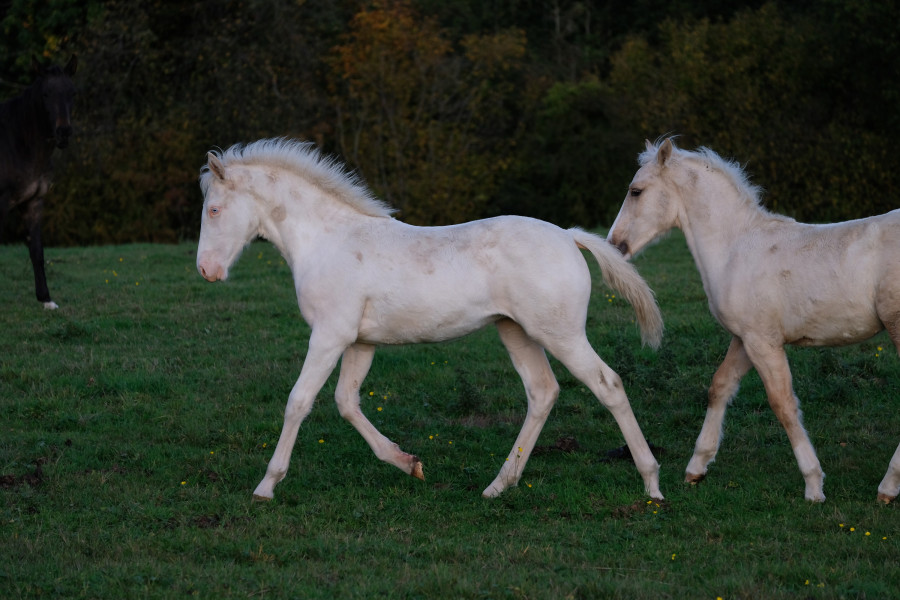 Pop Satori Gontreuil, pouliche pie crème overo née en mai 2025, par Siddarta de Gontreuil (OC croisé paint par Vic Altaïr) et Nina (OES croisée Wielkopolsky).