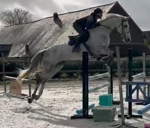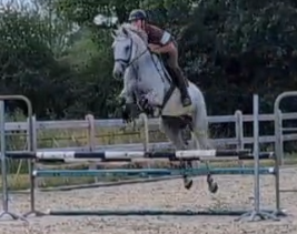 hongre gris de 12 ans, 1,68m, porteur avec du sang.