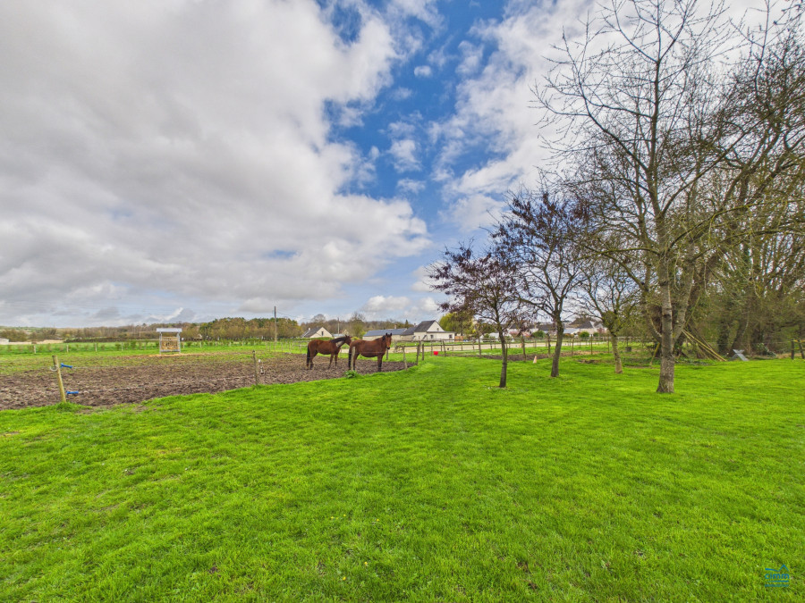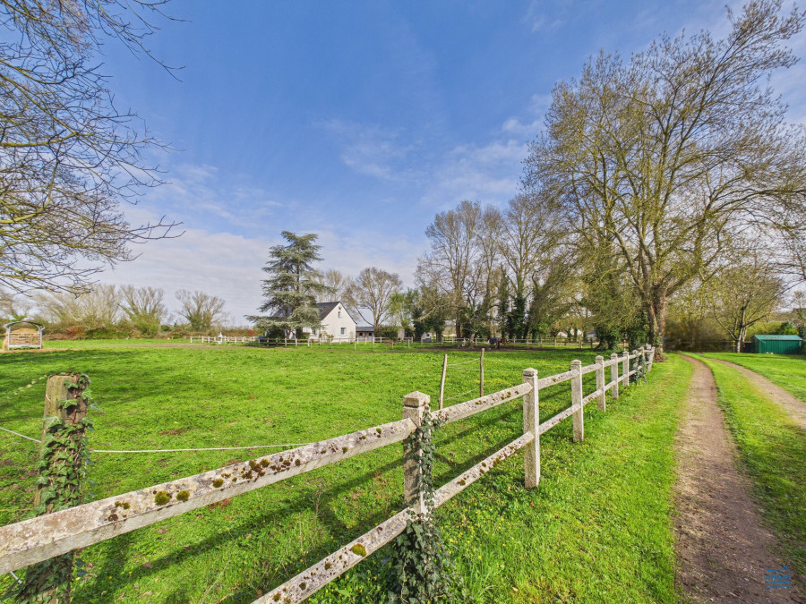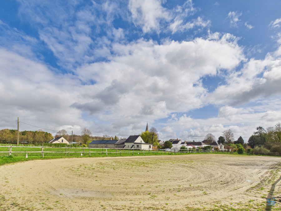 Accessible par un chemin privatif, cette propriété offre un environnement calme au cœur du bourg de Neuillé. Elle s’articule autour d’une cour stabilisée desservant, d’un côté, la maison d’habitation et, de l’autre, les installations dédiées aux chevaux.