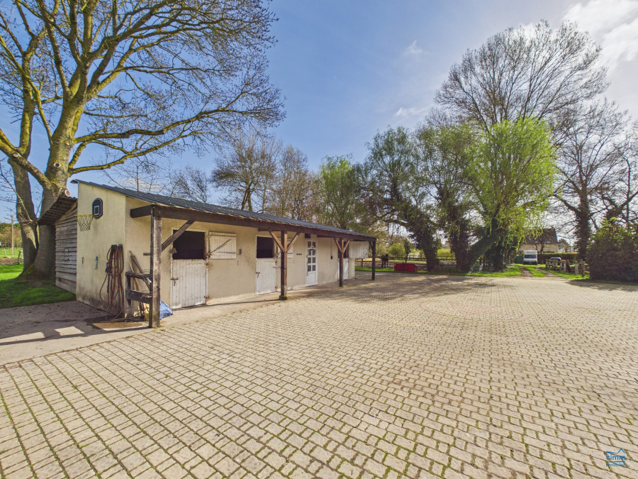 À l’extérieur, face à la maison, une dépendance accueille trois boxes de 3x3,5 m ainsi qu’une sellerie. Le bâtiment dispose également d’un espace douche extérieur et, à l’arrière, d’un abri d’environ 30 m². L’ensemble est complété par plusieurs paddocks clôturés et arborés, ainsi qu’une carrière en sable local de 60 x 20 m, nécessitant des travaux de remise en état avant utilisation (hersage et drainage).