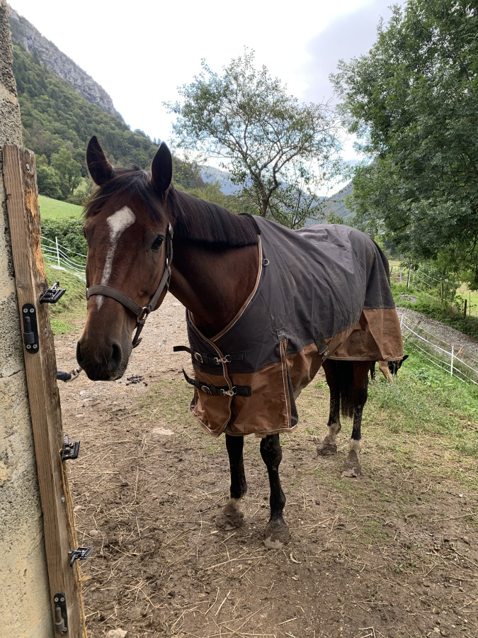 Cheval rustique, vie au pré en troupeau ( très sociable), pied nus. ?