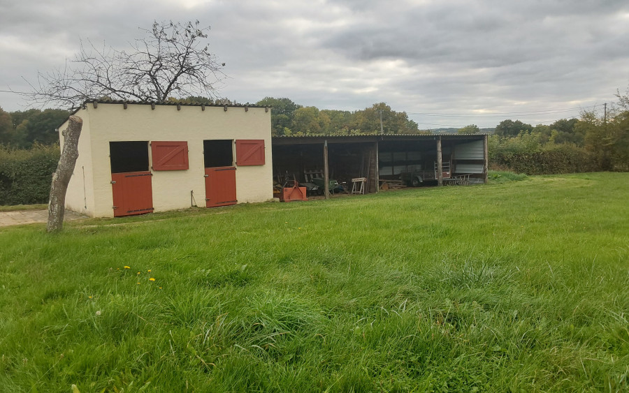2 boxes, éclairage, abreuvours. Abri de champ, +elc., abr. et espace pour stockage de foin. Encore plus de dependances pour moutons, poules, stockage etc