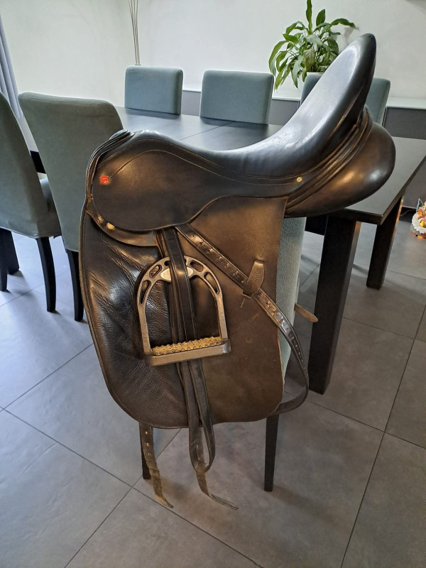 Vends selle de dressage Albion en cuir noir, 17.5 pouces.