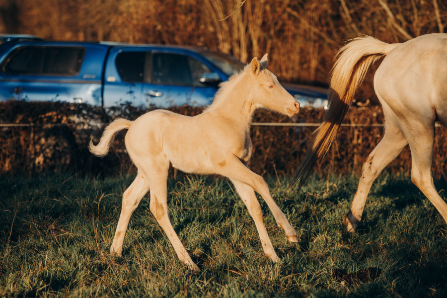 Qualipso du Baki, Quarter horse PP cremello champagne ( tests en cours pour la couleur )?