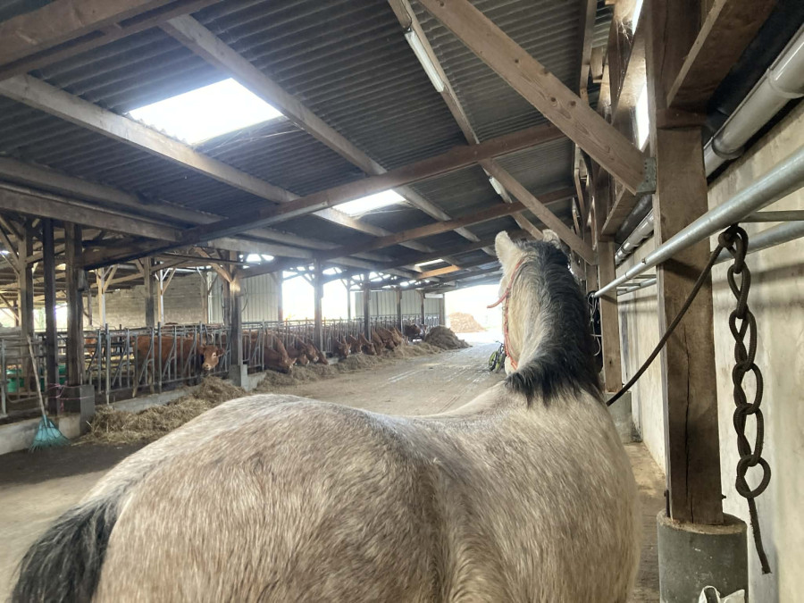Yandria est un croisé trait croate de 6 ans, toisant 1m45 au garrot. Il est installé dans une petite écurie de propriétaires aux environs de Saint-Étienne-de-Montluc, où il vit au pré à l’année.