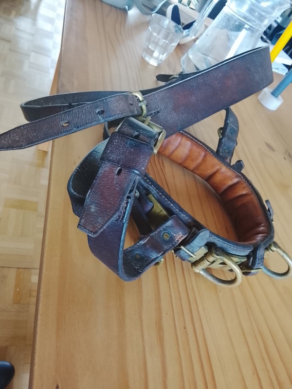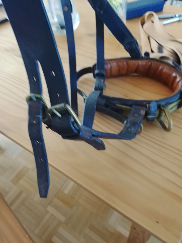 En bon état. Boucles en laiton. Pour cheval ou âne de grande taille. Très solide.