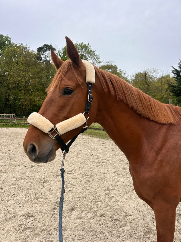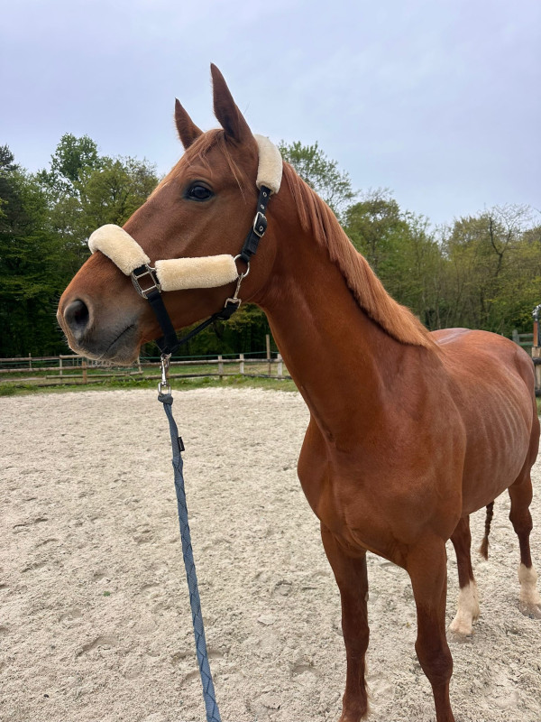 Il débute dans le travail c'est un très gentil très respectueux connais le box il a l'habitude d'être avec jument poulain et box à côté d'un Hongre il connaît la selle le filet a commencé à avoir le cavalier sur le dos très respectueux il n'a aucune méchanceté que ça soit monté ou à pied