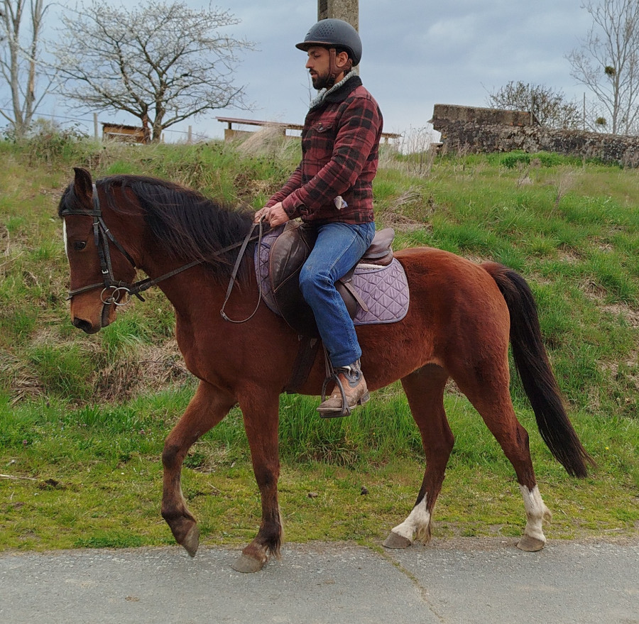 NUGE est un hongre de trois ans qui toise 1,42m, il est monté et attelé, C'est un poney sympa pour loisir ou compétition. Il est très agréable et proche de l'homme.