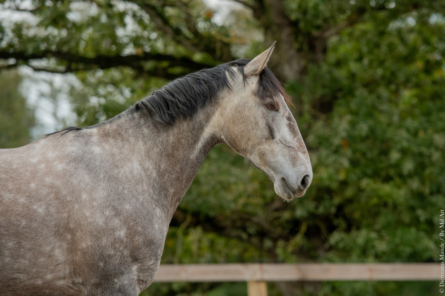 Dans le travail, elle dispose de bases solides avec un travail latéral déjà confirmé, notamment sur les épaules en dedans et les cessions à la jambe. Elle évolue avec sérieux et régularité, permettant à son cavalier de progresser sereinement. Très fiable en extérieur, elle s’adapte facilement et se montre rassurante.