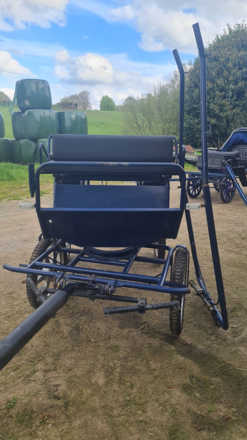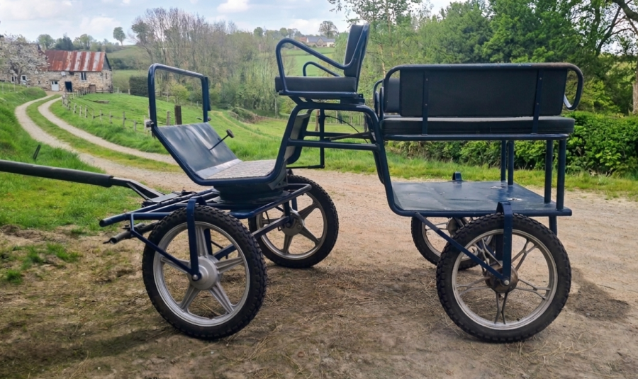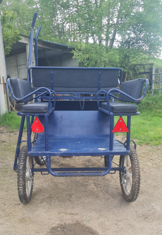 Calèche 4 roues bleue, idéale pour la promenade et le loisir.