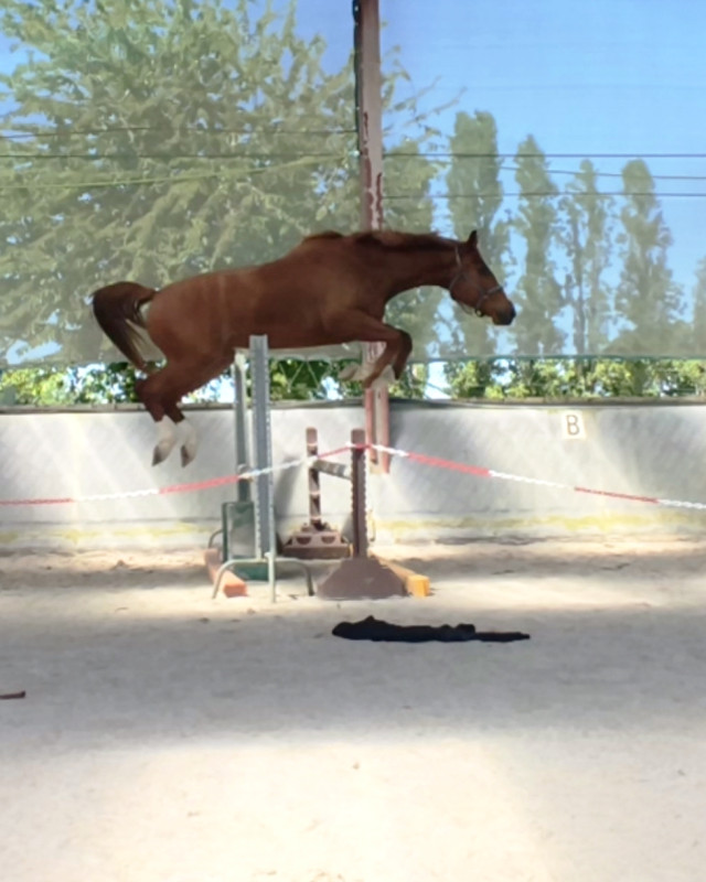 Il n'a sauté que 3 petites fois en liberté et montre de très belles choses, notamment beaucoup de force, du respect et un vrai sens de la barre. il apprend très vite.