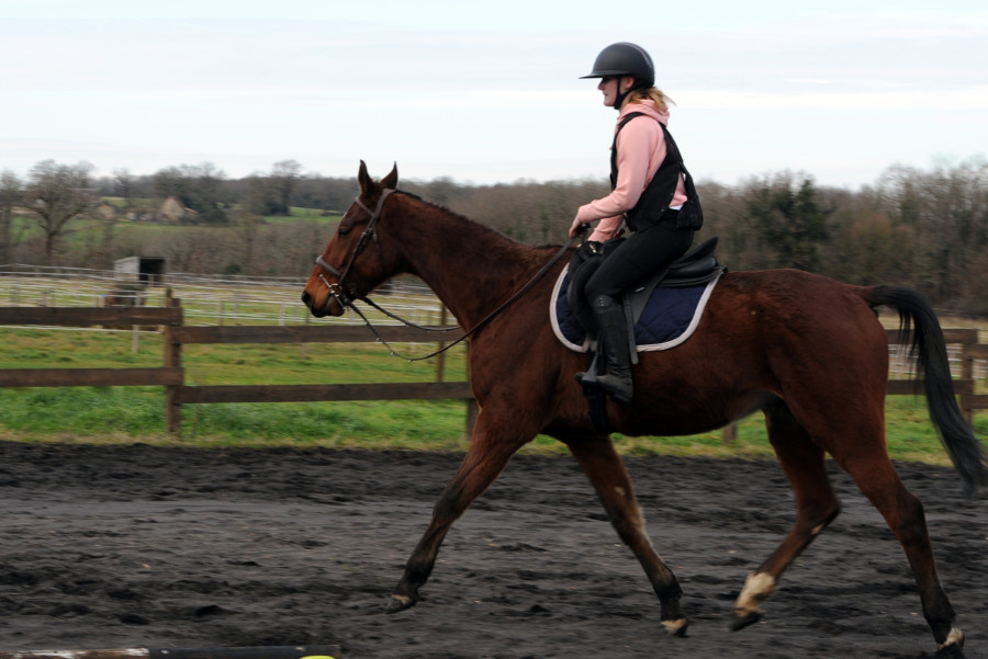 King a été mis au sulky. Il pourra être également retravaillé pour être attelé en "mode loisir". Il est très bien mis aux longues rênes pour les adeptes.