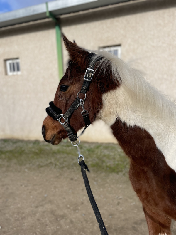 Très gentille, caline, et proche de l’humain.Bien manipulée, bien dressée en main, se déplace en licol. Facile à vivre, vie en troupeau