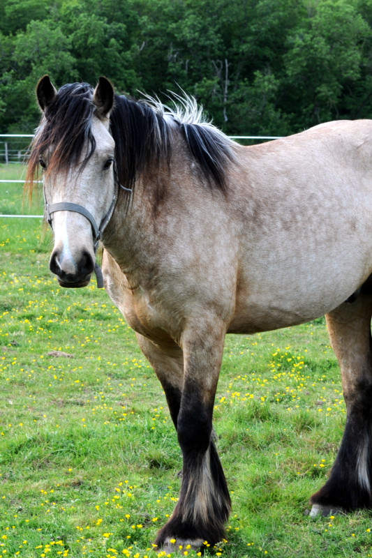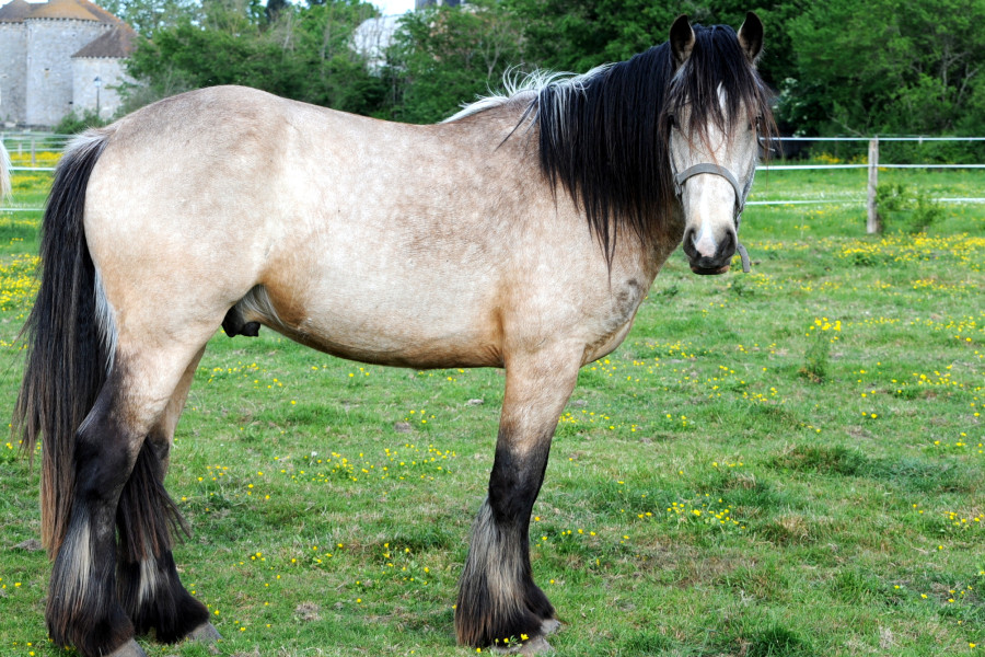 Onslo, poulain male irish cob (oc) isabelle né en 2024 et toisant actuellement 1m53 (encore en croissance), est à la recherche de sa nouvelle famille.