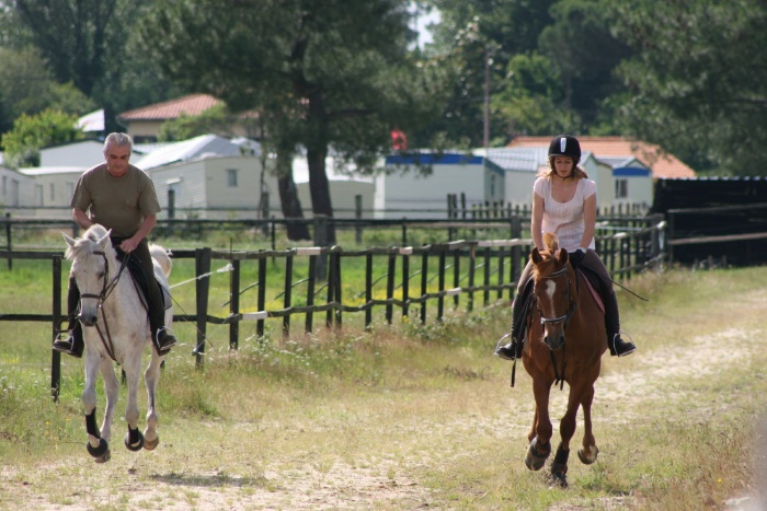 Il y a également une grande piste de galop ovale de 750m . Idéale pour détendre les chevaux avant et aprés le travail, et pour leur donner de l'endurance.