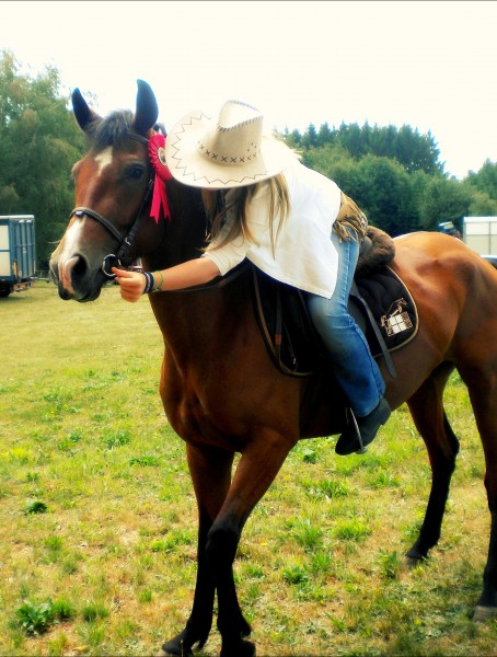 J'ai une superbe jument paint horse de 5 ans du nom de Texane, avec beaucoup de caractère, en demi pension. Je fais principalement du western avec, pour le moment elle est au travail car elle ne connait que les balades et était très peu monté. J'espère au printemps la sortir lors de petit concours d'extérieur et en TREC.