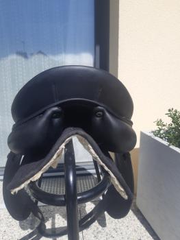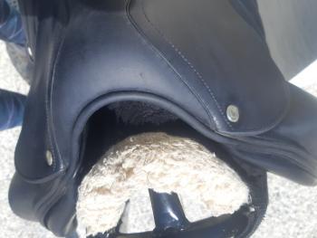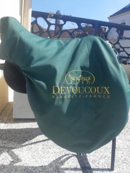 À propos : Selle en bon état.Les matelassures et le cuir sont en bon état.Tjr bien entretenue et vendue avec sa housse Devoucoux doublée.Quelques défauts visibles sur photos. Arcade normal.