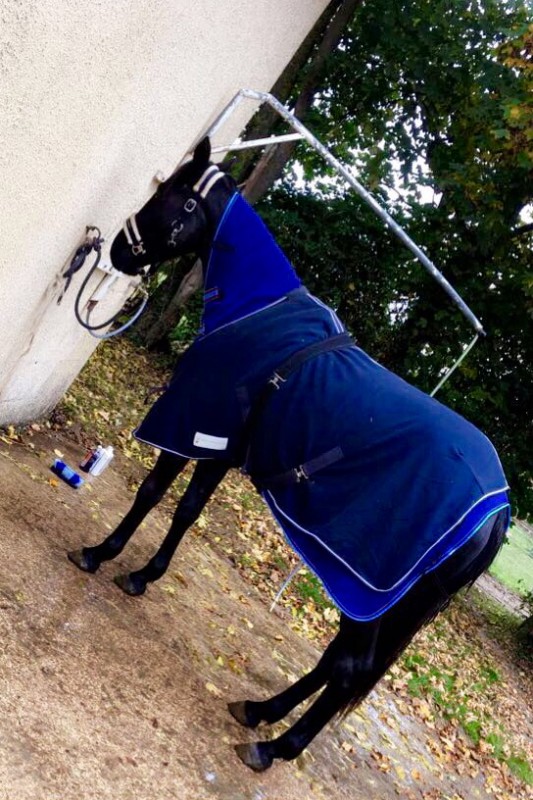 Présentation : Hongre noir pangaré, légère tache blanche sur la tête, calme, docile