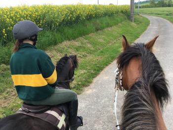 Je suis cavalière de loisirs, j'aime les randonnées et les maniabilités et prendre quelques cours avec ma FM.