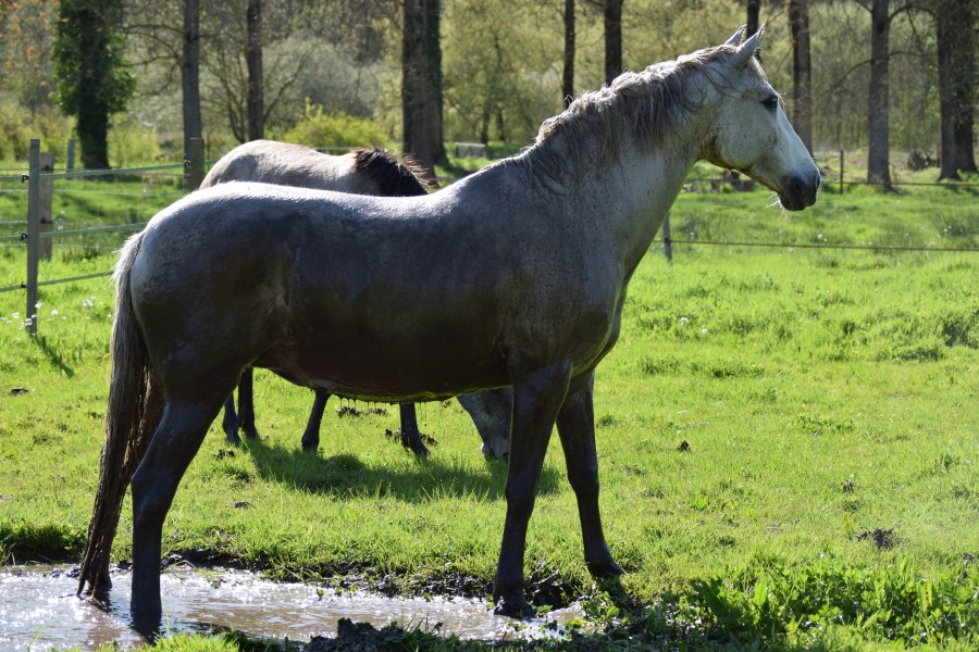 Présentation : Ma fidèle compagne depuis 24 ans ! achetée "sauvage " ,mon premier cheval pour mes 20 ans . Dressée par mes soins avec l'aide précieuse et rare de Mme Sue Oliveira . Une cocotte minute qui n'a peur de rien ,ni les ours ,les rapaces ,les drapeaux ,les canons de la commémoration de la bataille de Crécy à laquelle nous avons participée ,quel souvenir ! Elle fait le bonheur et l'assiette de ma fille de 7 ans .