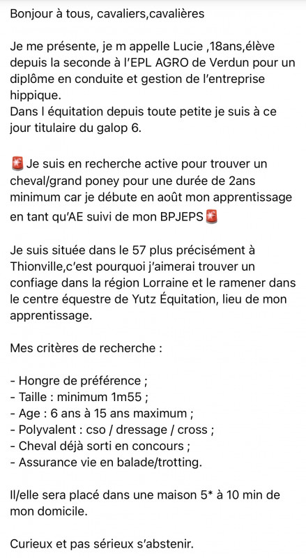 Années d'équitation : 15 ans