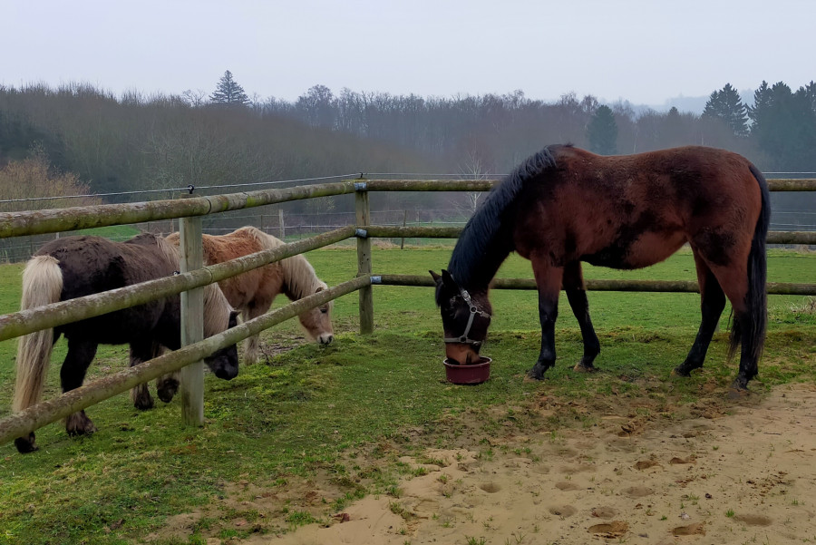 L'aventure continue via mon père qui a acheté une jeune jument de 3 ans en 2021 qui a pouliné en 2023 et dont je m'occupe avec ma fille.