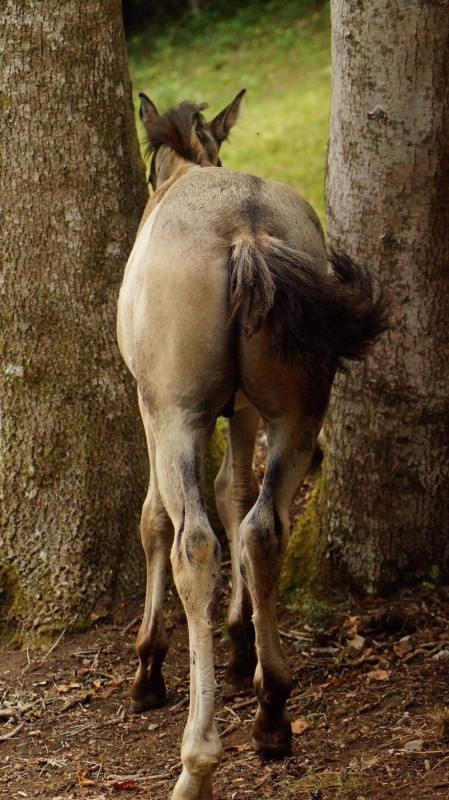 Suivie d'une pouliche de presque 2 ans, croisé Quarter et demi trait Comtois !