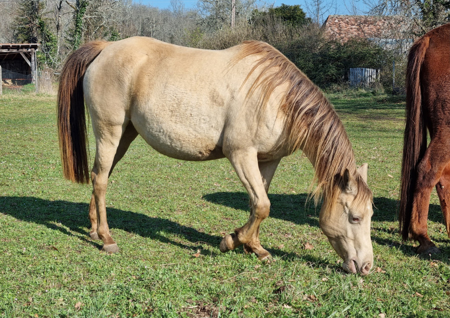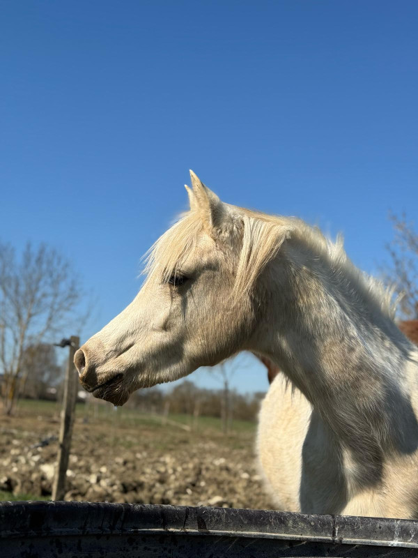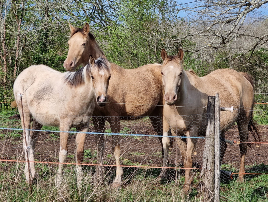 j'ai le bonheur d'avoir à mes côtés Velours, un amour de trotteur réformé, mon cheval de coeur et principale monture, et 2 juments DSA poulinières.