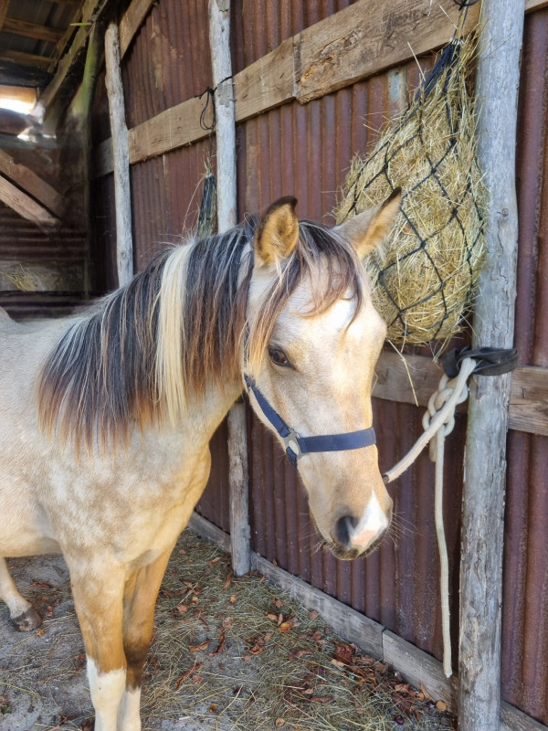 j'ai le bonheur d'avoir à mes côtés Velours, un amour de trotteur réformé, mon cheval de coeur et principale monture, et 2 juments DSA poulinières.