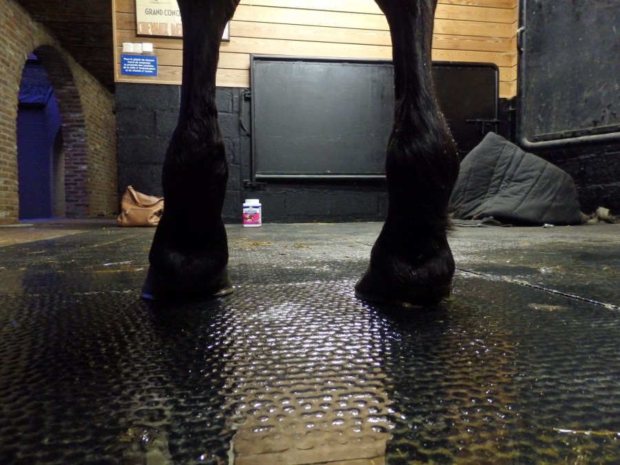 Le lendemain matin je passe, pas de boiterie mais engorgement de l'antérieur gauche au niveau du boulet-paturon avec les deux postérieurs un peu raides du coup douche au jet tiède-froid et cataplasme d'argile matin et soir jusqu'au lundi.