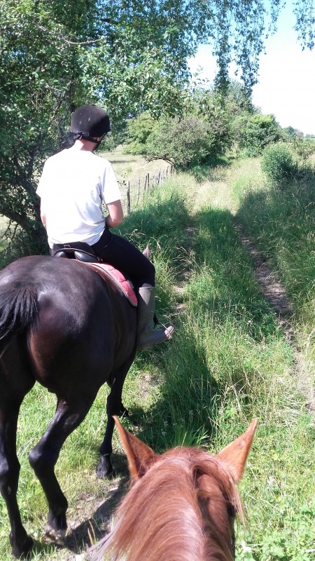 + 5,5 km hier avec une amie dont le cheval est calme pour rattraper la grosse frayeur de dimanche. Et Eros a été plutôt sage! Il a quand même sursauté quand un vélo arrivait un peu vite, mais rien de méchant! Ouf!