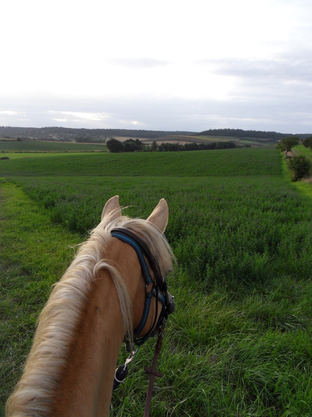 Bref, on a pas mal trotté mais ça y est il ne trottine plus comme lors de nos premières sorties et prends beaucoup moins la main. Il commence aussi à comprendre quand je lui dis "galop" maintenant on arrive à galoper et il tient un peu plus la distance qu'à nos débuts.
