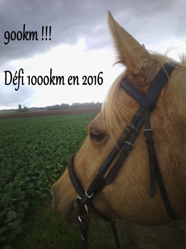 +11km cet après midi seule avec ma jument. Nous avons atteins les 900km !!!!