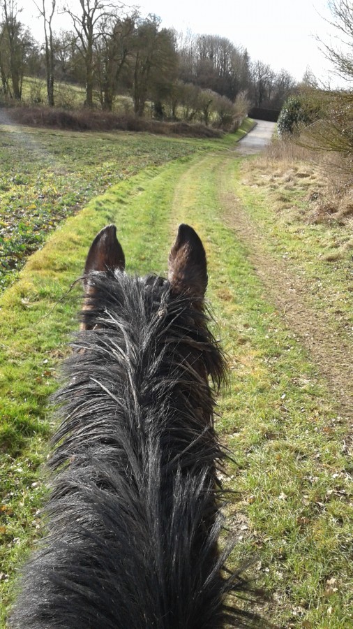 +5 km pour vad et moi, à cheval pour la première fois depuis 4 mois. sous la pluie, ras le bol du manège.