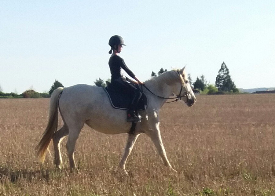 nos montures : Liberty (paint horse de 10 ans ) monté par ma grande de 13 ans, Capri (PRE de 14 ans) montée par ma cadette de 11 ans et Queen (demi trait de 13 ans) montée par moi, des chevaux d'exterieur extraordinaire , pieds nus et montés en side (sauf la demi trait qui a besoin d'un peu plus de cadre)