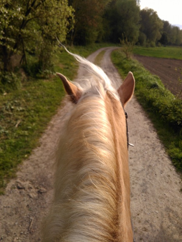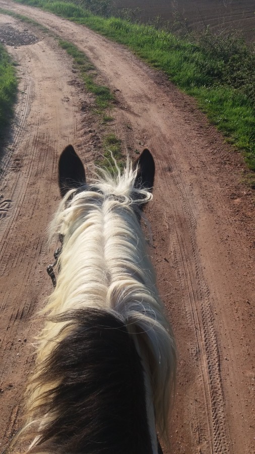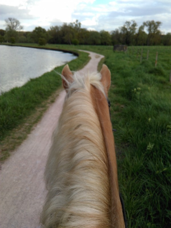 un tour habituel (forets, champs, petites routes) environ 10 kms en mode pépère mais avec du pas du trot et du galop.