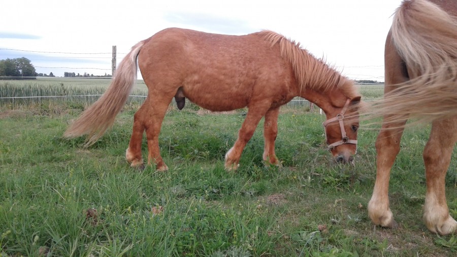 Le petit est niquel niveau poids, j'aimerai le garder comme ça mais je ne suis pas sûr qu'il reste si fin encore très longtemps avec l'herbe... le plus grand est moins beau, il est creux du dos de de la croupe mais à un gros ventre et un poil qui a du mal à tomber. J'attends de le manipuler un peu mieux pour faire un bilan sanguin si il ne change pas. ( j'attends aussi la semaine prochaine pour le vermifuger et voir si ça fait effet car souvent mince+ gros ventre ça peut venir des vers )
