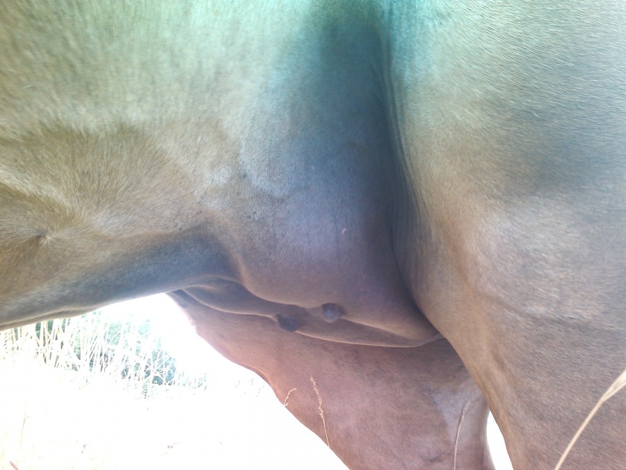 Quand je suis arrivée ,elle avait les pis tout enflés , alors je voulais la faire marcher pour voir si ça desenflait (deja hier c'etait un peu enflé mais moins qu'aujourd'hui)