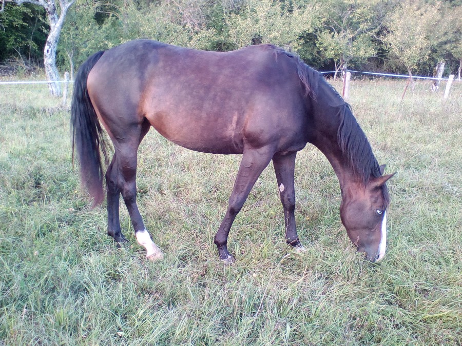 Heureusement à côté de ça, elle a été merveilleuse.... 2h de transport vendredi : impeccable ; parquée 2 jours chez mon père, seule, sans électricité dans la clôture : adorable, elle n'a fait aucune bêtise (sauf ronger un peu le tronc d'un arbre...) ; 2h 30 de van au retour : parfaite !
