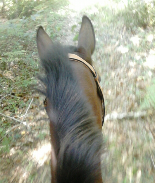 + 5,88 km hier monté! Pour une fois j'étais avec une amie cavalière (ça doit arriver une fois par mois ) On a un peu trotté. Au début Éros a essayé de doubler son cheval, mais il s'est laissé reprendre facilement et nous avons pu continuer à un bon rythme rênes longues avec chaque cheval à sa place. Bon, de toute façon Éros n'avait aucune chance, l'autre cheval est un PS réformé de steeple