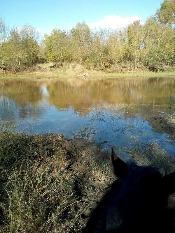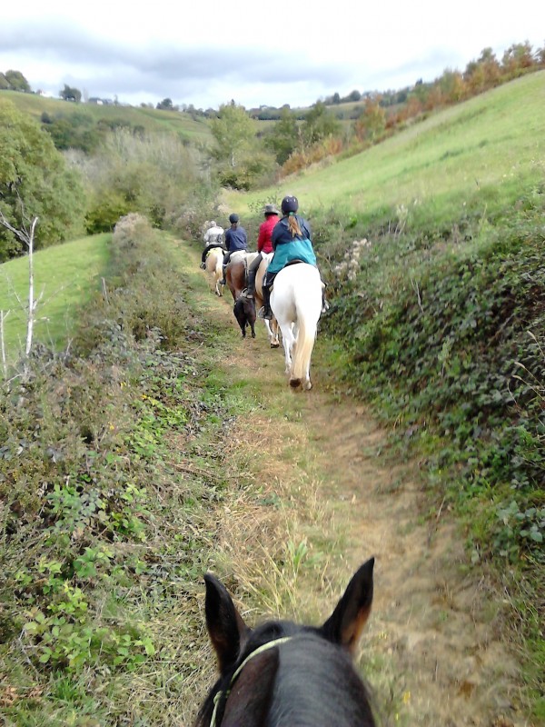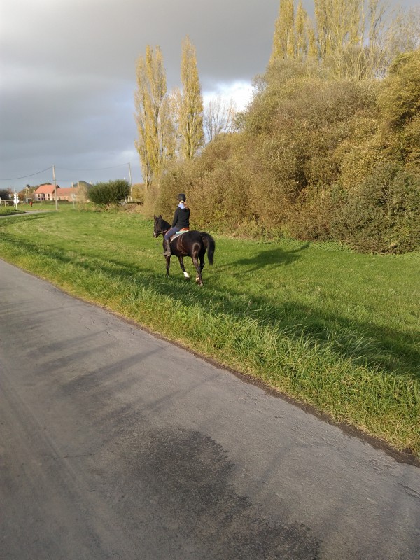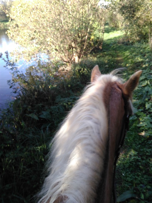 Une copine et sa maman son venues en van pour la balade, avec une autre copine a moi, ainsi que le propriétaire chez qui j'ai mon cheval en pension, du coup on été 5 mais malgré un début un peu "chaud" ça a été chacun à trouver sa place pour que les chevaux soit calme.