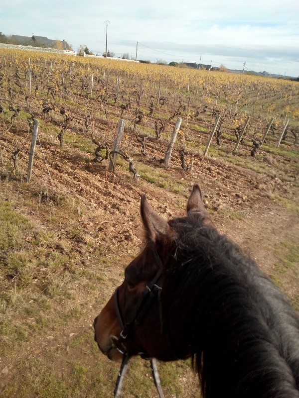 Les vignes sont superbes...On est allé s’entraîner sur notre contre haut, il est vraiment sympa mon cheval...Des fois.