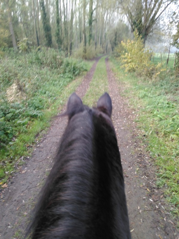 on a fait 2km 200 ce matin apres avoir fait qqs tours dans le rond de longe au trot et au galop pour voir comment je me sens dans la barefoot . Et bien je m'habitue et Mia semble pas trop mal ...sauf qu'elle galope avec la tête a droite a main gauche ?! Mais bon difficile a travailler dans un rond de longe de 15 m C'est juste pour "voir"